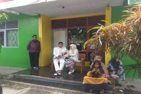 Momen kedua calon pengantin beserta keluarga yang menunggu di depan pintu KUA itu pun diabadikan dan diunggah fotonya hingga viral seperti sekarang.
